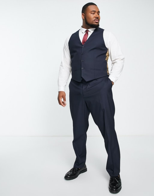 Asos Design Asos Design Plus Wedding Skinny Suit Vest In French Navy Micro Texture Best Suits For Big Men Skinny Suits Outfits For Big Men