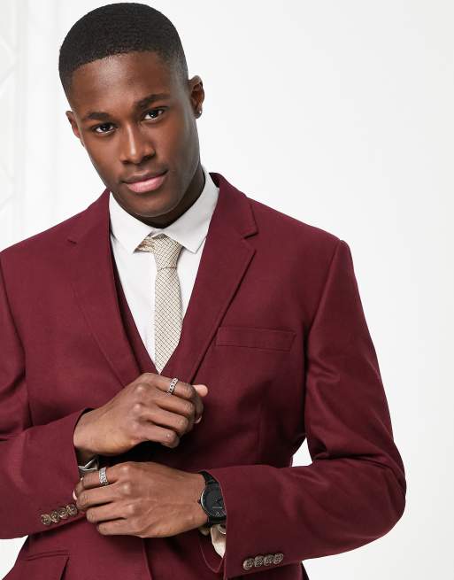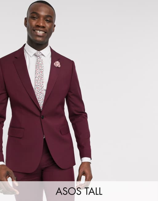 Asos Design Tall Wedding Skinny Suit Jacket In Burgundy Asos